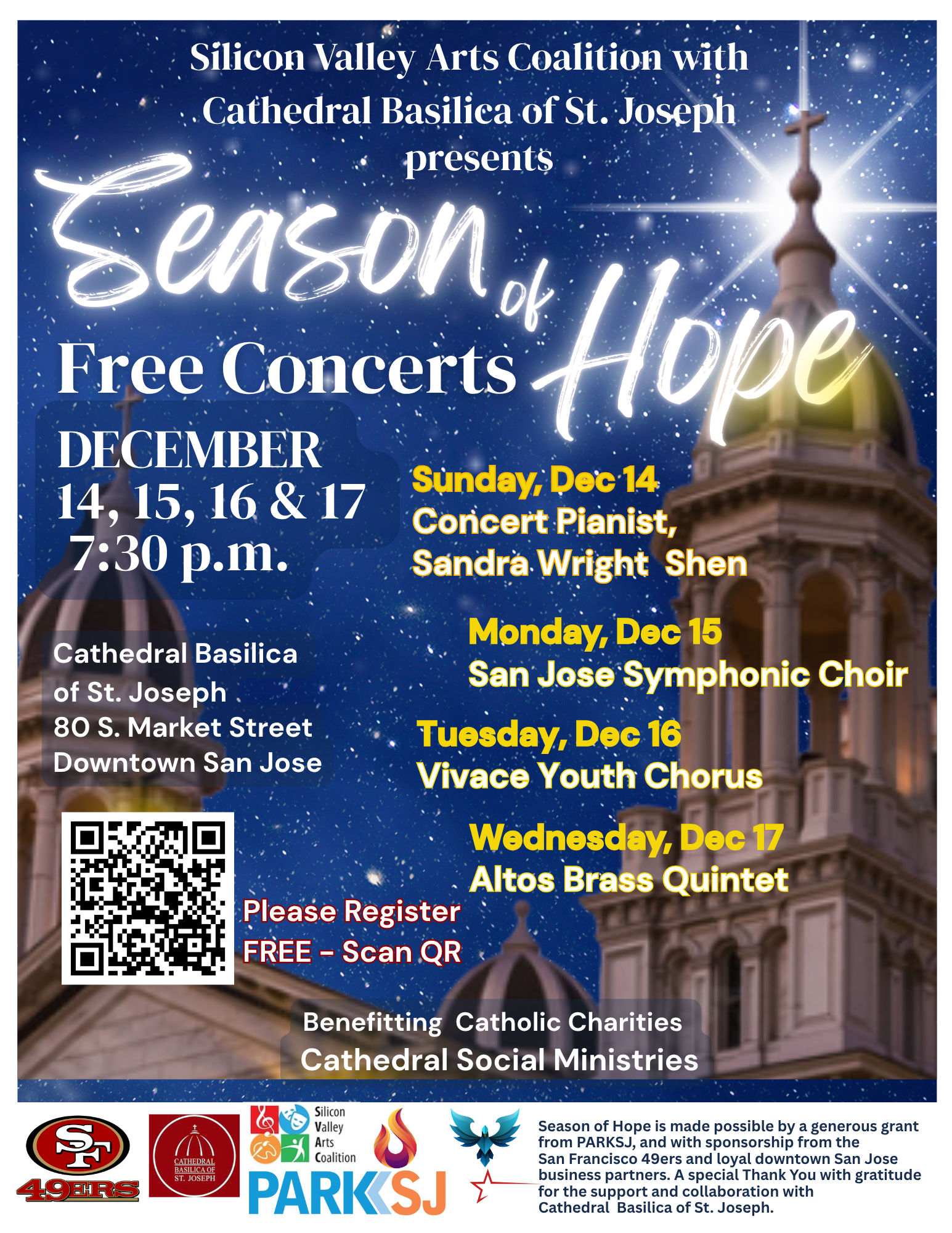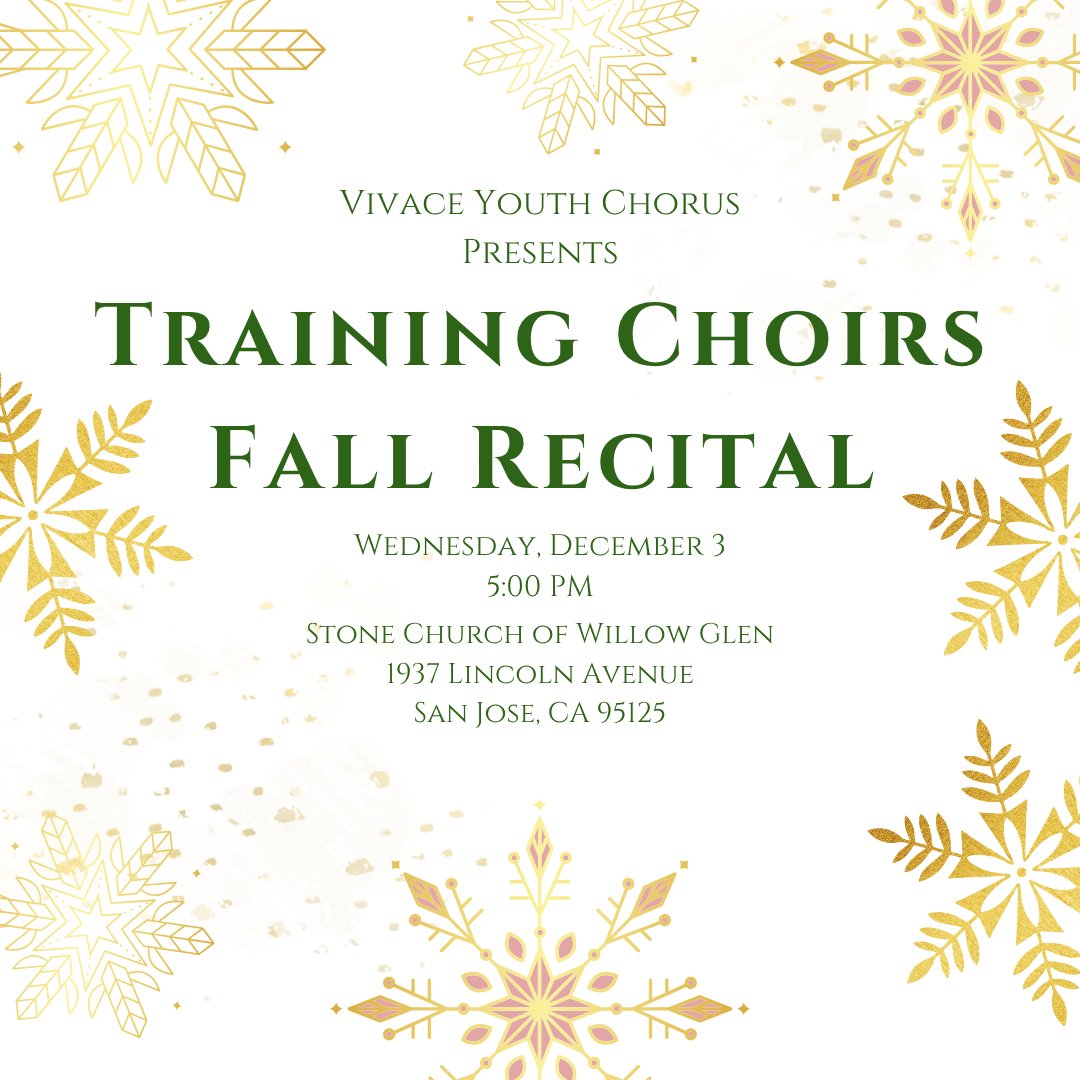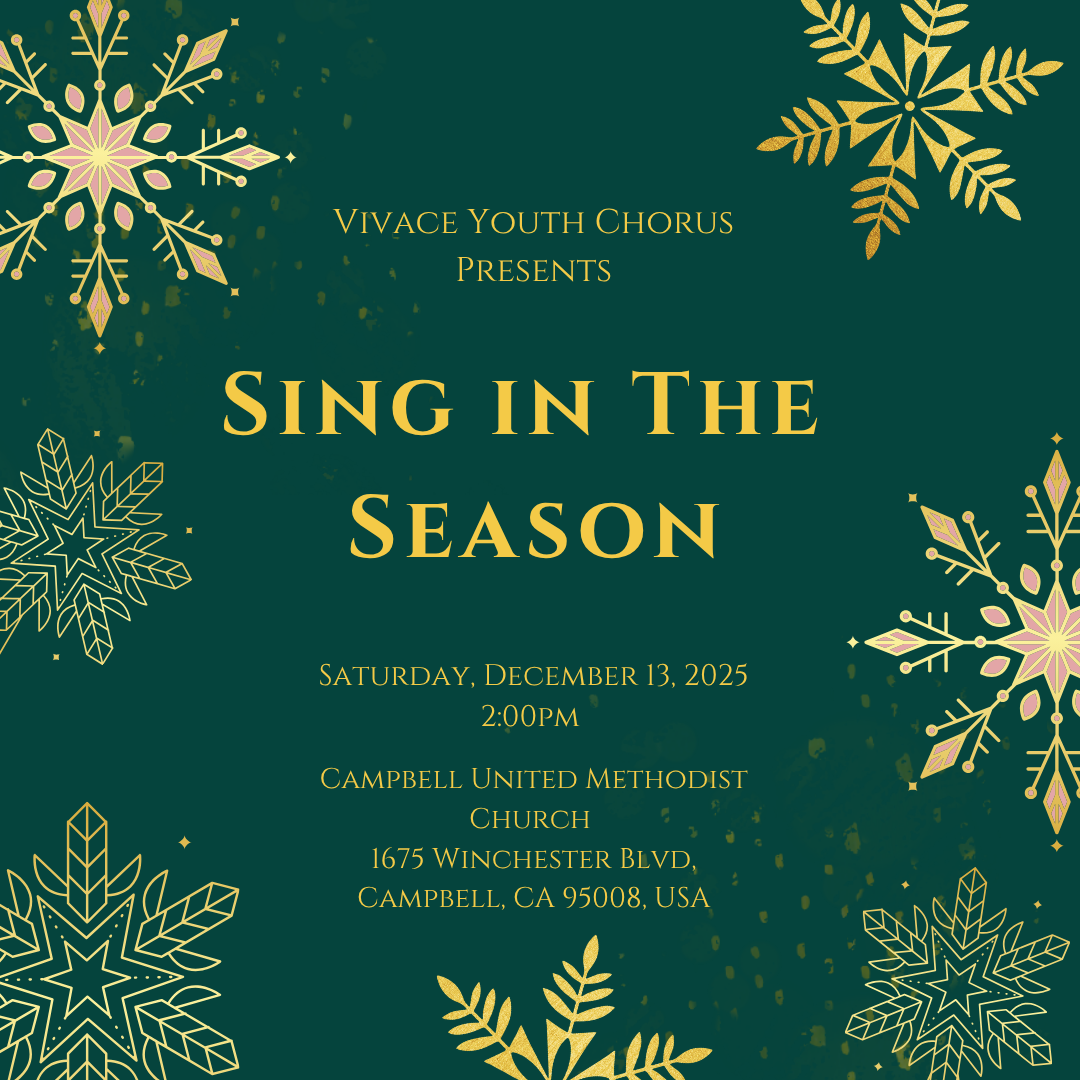 We hope you will also join for the Season of Hope Concert Series in Downtown San José, just steps from Christmas in the Park. Vivace Youth Chorus' Performing Choirs, Andante, Allegro, Presto, and A Cappella, will reprise their winter concert music with some additional favorites as well. This long-beloved downtown tradition makes its triumphant return this year, and Vivace is incredibly honored to be a part of it.